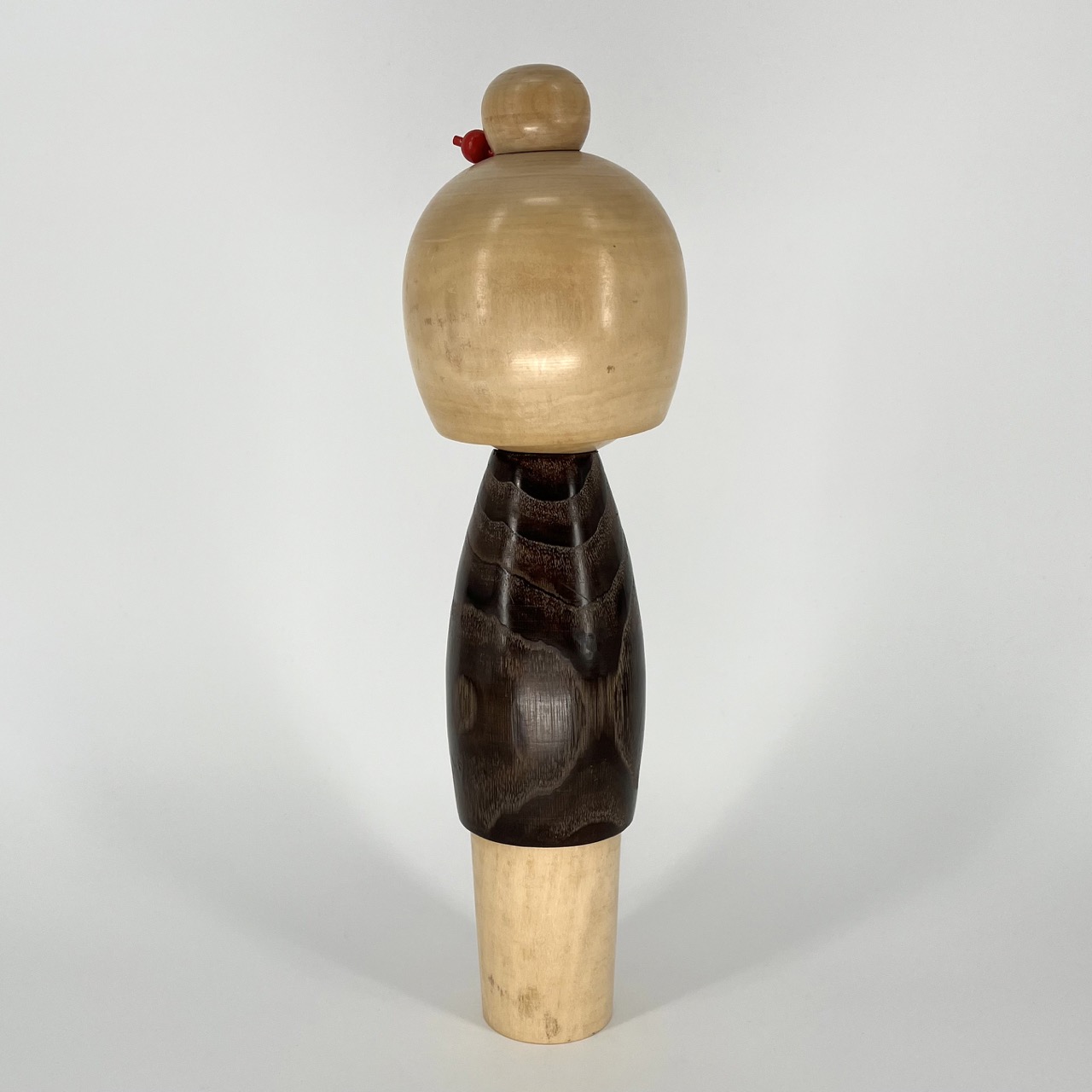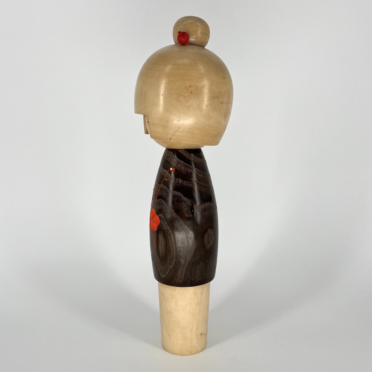 In Japanese tradition, the flower blossom is a symbol of rebirth and strength, by Master Usaburo. This adorable doll has also a little sister, they are sold separately. The Kokeshi has sunlight discoloration at the back.